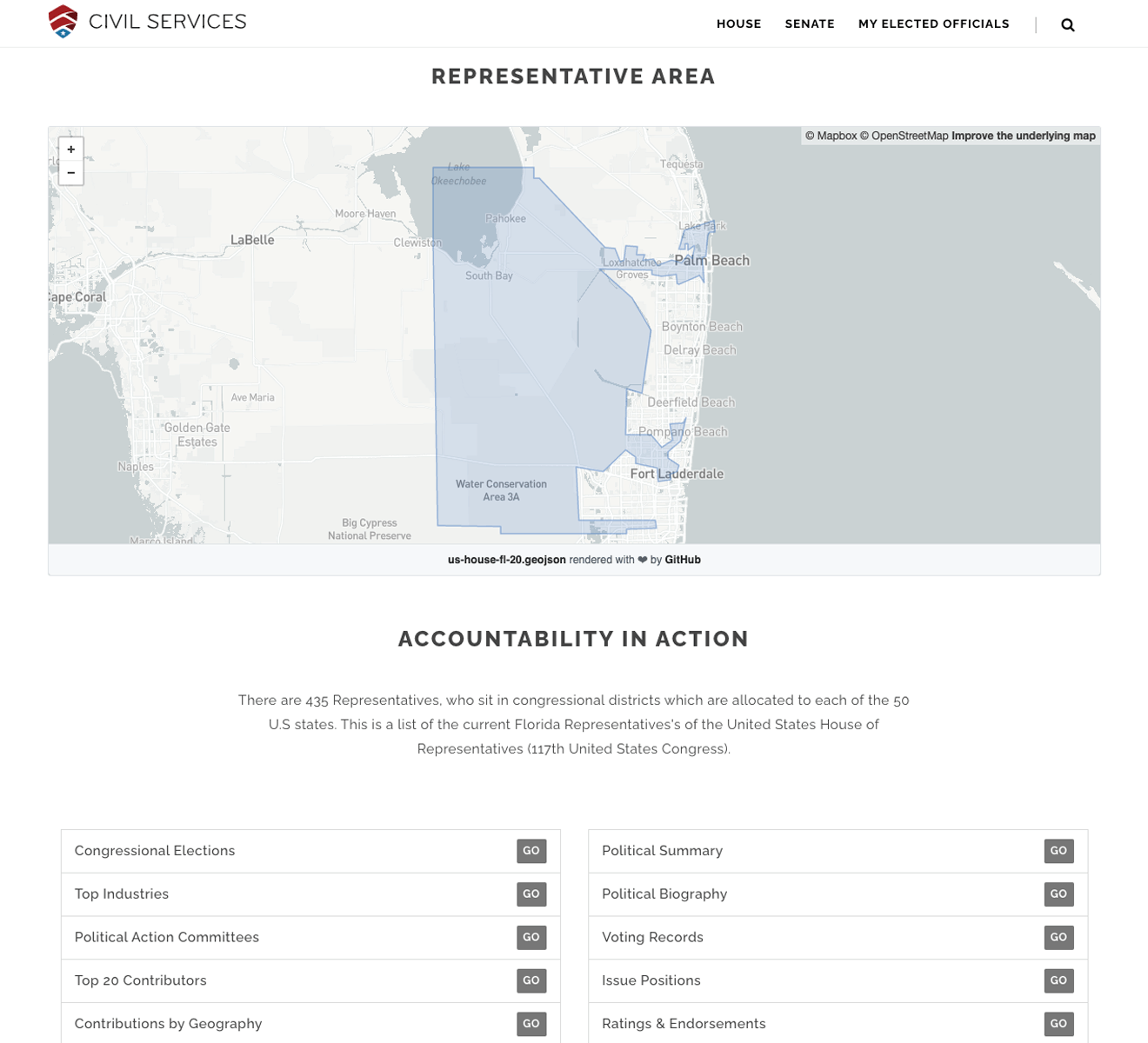 While working on several custom projects for StayWoke.org and CampaignZero.org, we discovered a need for a more robust API to help United States Citizens be a part of what is happening in their Local, State & Federal Governments. We ended up creating a massive API and a full-featured website that acts as a central location for accessing information about elected officials.